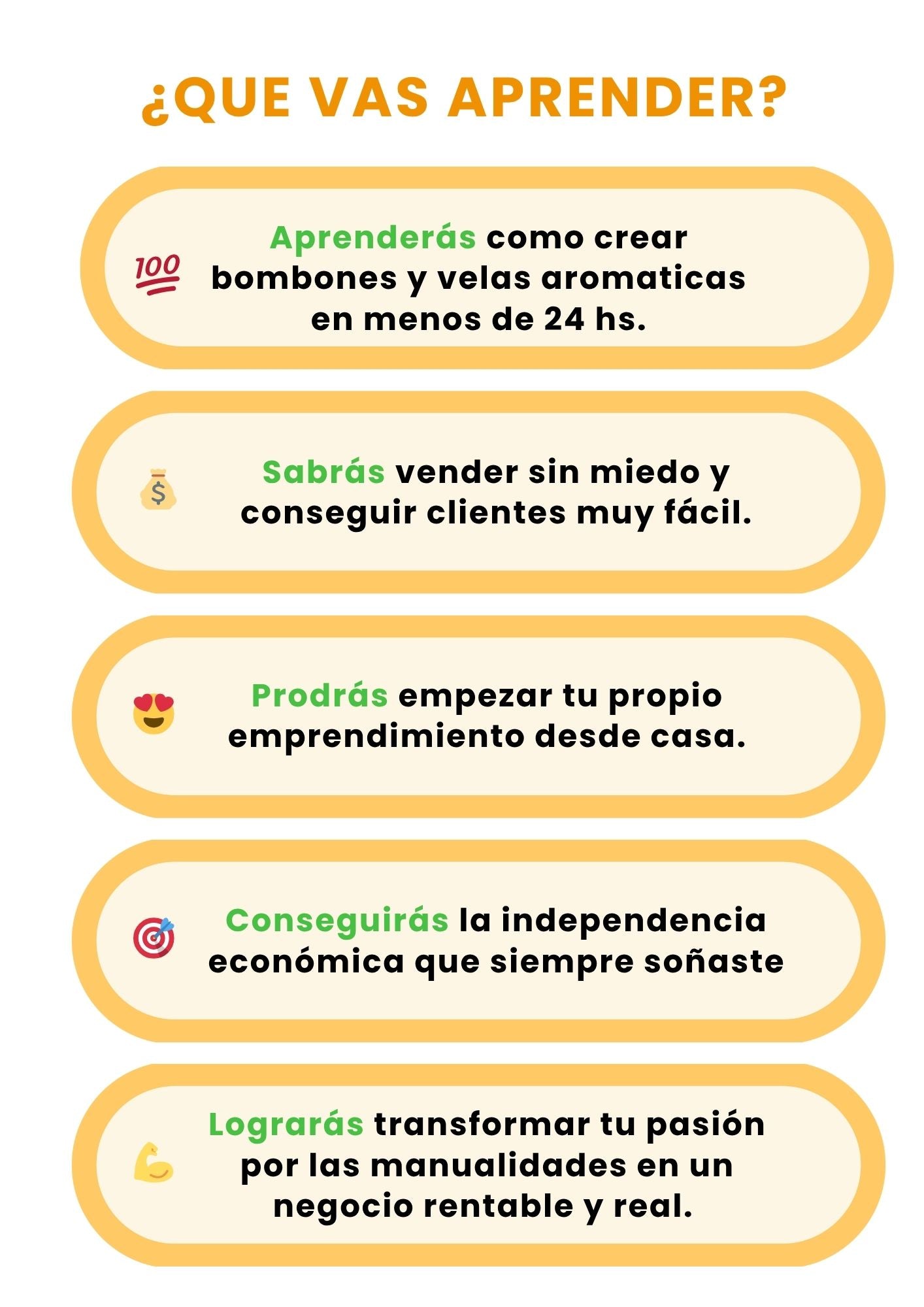 ¡Claro que sí! Muchos alumnos usan estas técnicas para vender sus propios wax melts y bombones aromáticos. Con baja inversión y alta demanda, podés generar un ingreso extra real desde tu cocina.